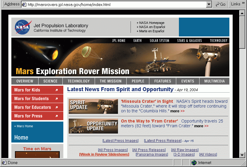 Благодаря тому, что американские марсоходы Spirit и Opportunity опустились на поверхность Марса и начали передавать исследовательские данные и изображения, общественность получила удивительную возможность совершать виртуальные прогулки по Красной планете, проходя их маршрутами.