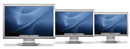 Новая линейка открывается уже 20-дюймовой моделью Apple Cinema Display, снабженной матрицей с разрешением 1680x1050, яркостью 250 лм, контрастностью 400:1.