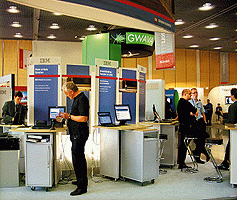 Барселонский конгресс-холл - современная многоуровневая среда, хорошо приспособленная для интенсивной коммуникации. Там на разных уровнях были развернуты действующие стенды с мощными серверами и сотнями компьютеров, объединенных в сеть и оснащенных средствами аутентификации - считывателями пластиковых карт участников. В ходе более чем 300 технических презентаций, а также в рамках работы лаборатории One Net Solutions Lab демонстрировались новейшие достижения в области коммерческих сетевых систем, предназначенных для предоставления универсальных услуг по обеспечению функционирования и безопасности разнообразных сетей.