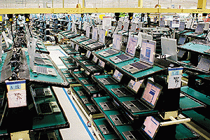 Пройдя предварительную инспекцию, компоненты и детали от поставщиков поступают на склад SESC. На первом этапе задействованы линии поверхностного монтажа комплектующих на печатные платы. На трех конвейерах одновременно идет набивка плат, пайка волной и контроль работоспособности. Далее готовые платы попадают на пять сборочных линий, где вместе с другими готовыми узлами (ЖК-матрицы, жесткие диски, динамики, клавиатуры и пр.) монтируются в корпуса. Затем ноутбуки поступают на тестовый участок, где подвергаются проверке на специальных программах - сначала в условиях обычного помещения, затем в термокамере. Готовые изделия поставляются в восемь стран Европы, а также в Китай, Гонконг, Индию и Мексику (откуда они идут в США). Разработка и вывод на конвейер новой модели занимает 8-10 месяцев (в случае OEM-изделий - год).