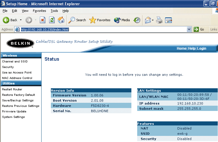 Беспроводной маршрутизатор Belkin Pre-N Router очень многое рассказал мне еще до того, как я вошел в систему