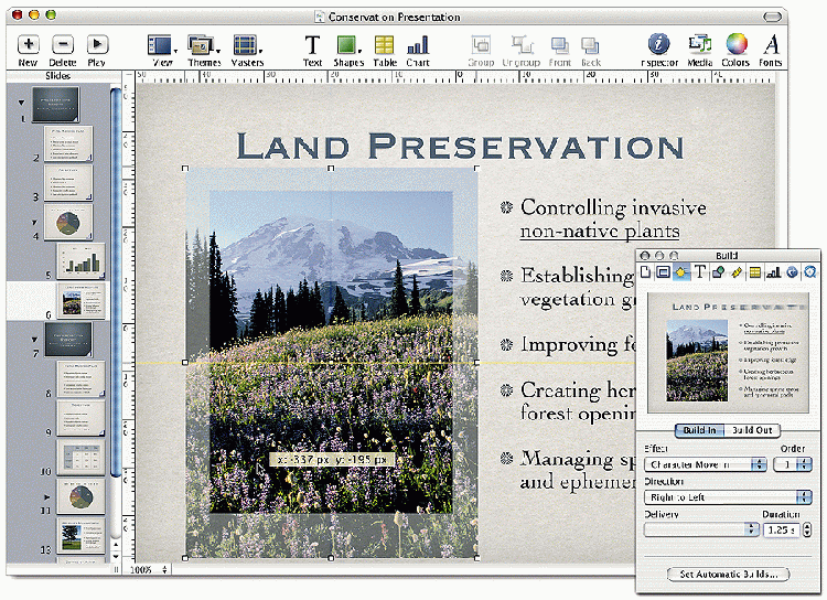 В презентационной программе Keynote 2 появилось 10 новых тем оформления, анимированные текст и графические объекты, средства автоматизированного создания презентаций, "дисплей презентатора", значительно облегчающий работу докладчика, интерактивные слайд-шоу и возможность создания самовоспроизводящихся презентаций, что позволяет строить этакие "информационные киоски". Разумеется, обеспечена совместимость с AppleWorks и PowerPoint, а вывод презентаций можно также осуществлять в форматах Flash, PDF и QuickTime.