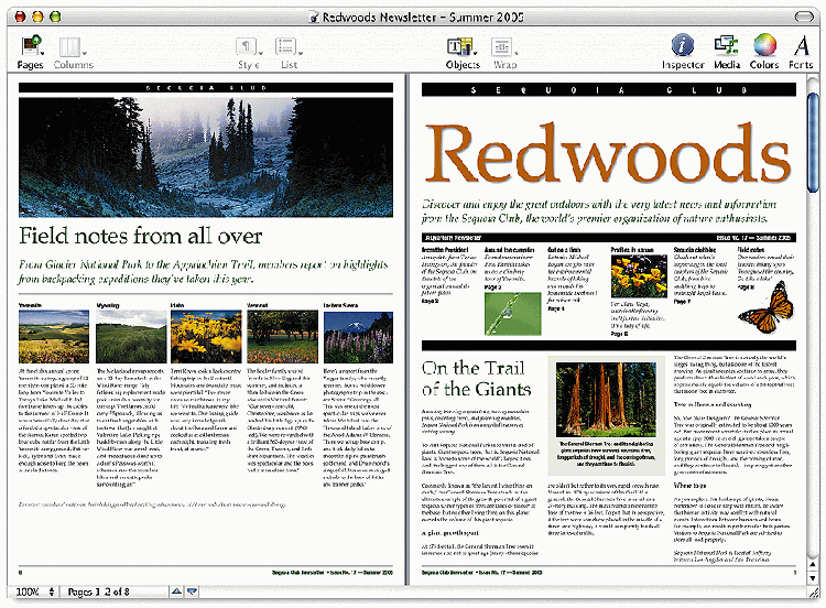 Редактор Pages - это, по словам Джобса, универсальный текстовый редактор "с толикой стиля". Его главным отличием является ориентация на повсеместное использование образцов-"templates" для документов, что роднит Pages с издательскими системами. Результатом должно стать ощутимое повышение зрительной привлекательности документов.