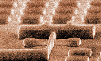 Совместными усилиями Калифорнийского университета в Беркли, корпорации Intel и Национальной лаборатории Лоуренса была создана FinFET-структура с длиной канала менее 20 нм, в которой размеры кремниевой вставки задаются промежутками между поликремниевыми затворами, а области истока/стока - процессом литографии. За счет нанесения специальных пленок на боковые стенки каждого промежуточного зазора разработчикам удалось вдвое увеличить ток транзистора и уменьшить толщину вставки в сравнении с приборами, изготовленными только с помощью процесса литографии. Структура затвора состояла из термически выращенного оксида толщиной 2,4 нм и SiGe толщиной 400 нм.