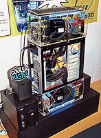 Foxconn представила на выставке помимо множества моделей системных плат привычных потребителю форматов и устройство в форм-факторе PicoBTX. Системная плата сконфигурирована при этом так, что оказывается возможной установка современной видеокарты формата PCI Express, т. е. владелец сверхминиатюрной по размерам настольной системы не будет чувствовать себя ущемленным в отношении производительности. Оригинально смотрится замкнутый контур водяного охлаждения, предназначенный для отвода тепла от центрального процессора ПК, - при этом блок охлаждения теплоносителя с вентилятором и медным радиатором предполагается крепить в стандартном корпусном отсеке под 92-мм вентилятор.