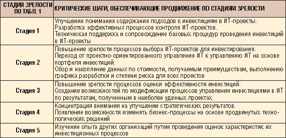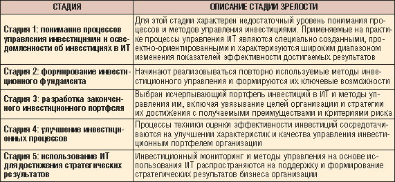 Таблица 1. Пять стадий зрелости в модели управления инвестициями в ИТ