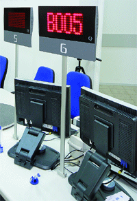 А так как поток клиентов непредсказуем, то ранее временами случались и многометровые очереди. Теперь, дабы посетители не волновались и не запоминали, кто, куда и за кем стоит, в центре установлена электронная система управления очередями, разработанная шведской компанией Q-Matic (www.q-matic.ru).