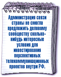 22 млрд. руб. - сумма действительно очень приличная, соответствующая шестой части всех капиталовложений в отрасль. Такой щедрости от государства мы не видели лет пятнадцать, а то и больше. В прошлом году наметилась тенденция к снижению отечественных инвестиций в ИКТ и спаду отраслевых показателей развития. Причина простая: до последнего времени самой привлекательной сферой для капиталовложений была сотовая связь. Но эта подотрасль вступила в полосу насыщения, что привело к резкому снижению инвестиционной активности на данном направлении внутри страны (см. PC Week/RE, N 1/2006, с. 1) и все более значительному перетоку капиталов отечественных компаний сотовой связи за границу, главным образом в страны СНГ.