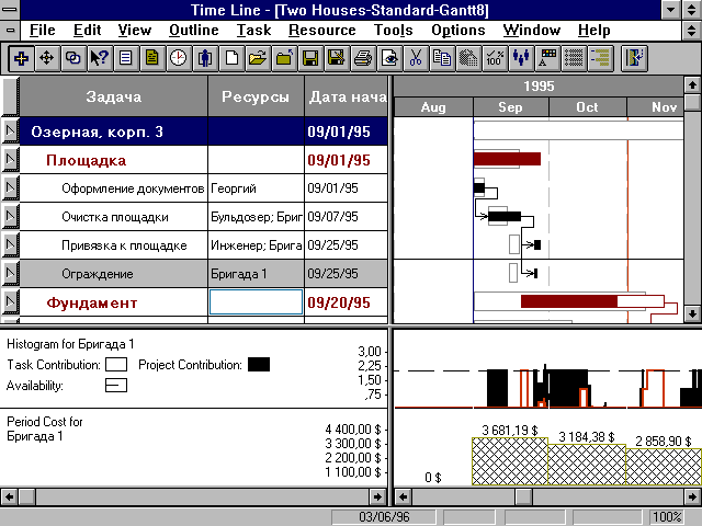 Time Line 6.5. Диаграмма Гантта, совмещенная
