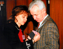 Еще больше радует, что не перевелись и любители русской песни. В фойе конгресс-центра ЦМТ была установлена небольшая эстрада - напевая в микрофон, и стар и млад могли на себе испробовать все прелести разработанного НТЦ Kami продукта, ориентированного исключительно на отечественный репертуар и получившего по аналогии с караоке (музыкальное сопровождение песен на компьютере) название KAMIOKE.