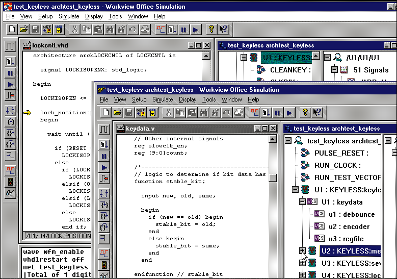 SpeedWave - моделирование цифровых компонентов, описанных на языке VHDL (в стандарте IEEE 1076 VHDL). Имеются средства отладки и просмотра временны/х диаграмм.