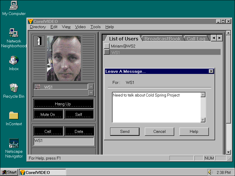 Однако интеграция с CorelVideo отсутствует. Например, мы вынуждены были хранить в программе записи результатов совместной работы пользователей с TalkShow, поскольку журнал регистрации вызовов CorelVideo не дает доступа к этой информации.