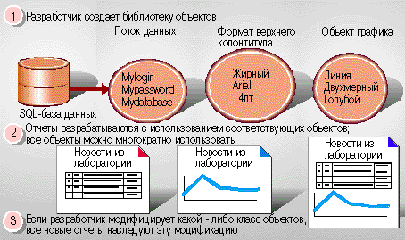 Разработка отчетов при помощи большинства современных инструментов, в том числе Crystal Info и Focus, - процесс достаточно прямолинейный. После установления связи с БД дизайнеры графически “рисуют” отчеты на экране.