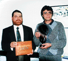 В присутствии журналистов практически всех московских компьютерных изданий и гостей из других фирм главный редактор Борис Молчанов торжественно вручил генеральному директору “АйТи” Тагиру Яппарову “настенную” табличку из красного дерева и абстрактного вида “настольный” бронзово-чугунный кубок ручной работы, чем-то напоминающий 12-дорожечный лист Мебиуса. В основании кубка выгравированы слова “Age quod agis”, что в переводе с латыни означает “Делай, что делаешь”. Г-н Молчанов пояснил, что данный девиз - не запрет на расширение направлений бизнеса, а символ того, что все, что делает награждаемый, он делает хорошо и на благо Отечества.