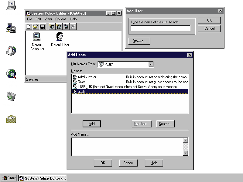 Для начала откройте редактор System Policy Editor в группе Program, которая находится в меню Start в Windows NT Server 4.0.