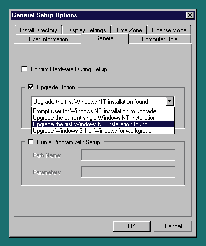 На системе, обновляемой до Windows NT 4.0, запустите WINNT или WINNT32 с ключом /U. После соответствующего запроса введите путь к текстовому файлу с установочной информацией. На этом автоматическая установка и выбор начальных опций завершаются.