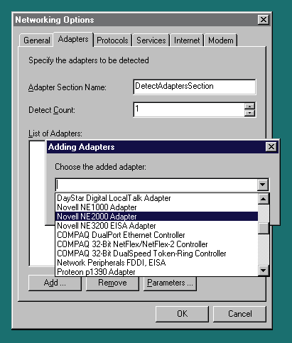 Рис. 7. Windows NT предлагает широкий выбор сетевых адаптеров