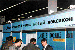 О фирме ПРОМТ - разговор особый, ведь она участвовала во всех до единого SofTool’ax. Если не рассматривать рынок бухгалтерских программ (там свои лидеры), ПРОМТ, по мнению экспертов, входит в первую тройку софтверных фирм России. Работая через крупных дистрибьюторов - RSI, "Лампорт", CPS, фирма ежегодно удваивает оборот. Продаются тысячи коробок с системой перевода текста Stylus (к этому следует добавить многочисленные продажи специализированных словарей, которых уже более 30 - едва ли не по всем областям и отраслям знаний). Уникальные продукты ПРОМТа неплохо расходятся и за границей. Их приобретают ЦРУ, ФБР, Госдепартамент и даже Центральная администрация федеральных тюрем США (видимо, там стало много русских). В 1993 году, выиграв международный тендер, компания поставила словари для НАСА и компании "Локхид". В последнее время получает распространение корпоративная настройка на конкретную тематику и глоссарий - такая работа была выполнена для одного из предприятий, входящих в концерн "Вольво", для "Инмарсата", а также для Ленского речного пароходства. Но меня лично больше всего порадовала на выставке витрина-музей, где фирма ПРОМТ разместила коробки со всеми (начиная от самых ранних) версиями своих продуктов. Люди гордятся тем, что делали и делают, помнят свою историю - значит, ростки цивилизованного бизнеса есть уже и у нас. И путь от новичков до звезд никому не заказан...