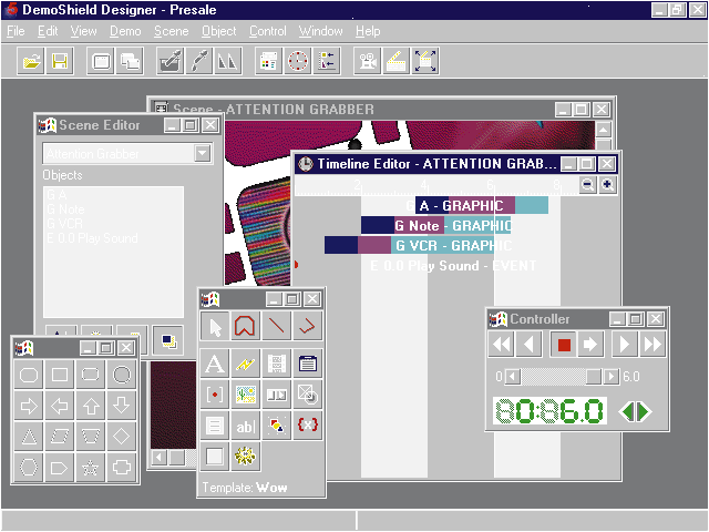 Превосходные инструменты для редактирования графических изображений и текста и для задания временных параметров объединены в пакете DemoShield 5 с контекстно-зависимыми ссылками (shortcuts). Они значительно ускорили этап разработки при проведении наших испытаний, независимо от имеющегося у нас опыта создания мультимедийных приложений или от авторского искусства.