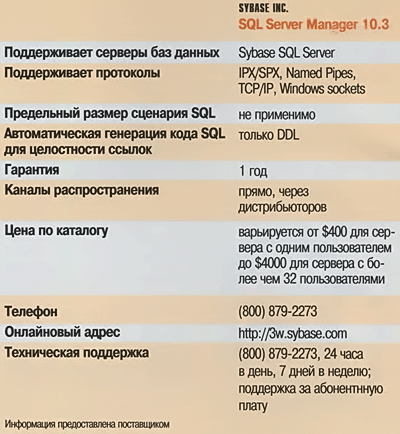 Мы не удивлены тем, что SSM поддерживает только продукты Sybase; однако нас поразило, что эта DBA-оболочка поддерживает только одну версию SQL Server, а именно System 10.