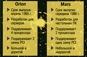 Спустя полгода после того, как в этом квартале микропроцессор Р6 корпорации Intel дебютирует в серверах, он приземлится на настольные ПК одновременно с Mars (Mars - кодовое название нового набора контроллеров этой компании). По сообщению источников, близких к Intel, более дешевые микросхемы Mars вытеснят первоначально созданный для Р6 набор Orion, приспособленный для работы в настольных ПК с микропроцессорами следующего поколения. Orion, который был спроектирован для многопроцессорных серверов, по плану должен был начать работать с Р6 в октябре или ноябре.