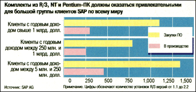 Как сообщил исполнительный вице-президент SAP Пауль Валь на ежегодной конференции пользователей SAPphire, проходившей в Фениксе в середине сентября, комплекты, предназначенные для компаний с доходом менее 250 млн. долл., обеспечат готовые решения на уровне предприятий, эти решения будут дешевле и проще в реализации по сравнению с установкой R/3 в настоящее время.