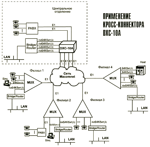 В максимальной конфигурации DXC-30 содержит до 15 двухпортовых модулей и способен осуществлять преобразование между 15 портами Т-1 и 12 портами Е-1. DXC-IOA может включать до пяти модулей и выполняет преобразование между пятью портами Т-1 и четырьмя портами Е-1, Интерфейсные модули соответствуют стандартам ANSI и МККТТ, поддерживают SNMP-управление и управление с алфавитно-цифрового терминала.
