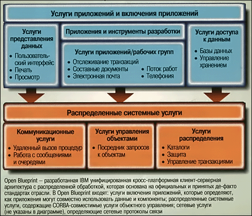 План Open Blueprint корпорации IBM направлен на то, чтобы улучшить интеграцию аппаратных и программных платформ IBM с разнородными платформами, используемыми сейчас в корпоративных вычислительных средах, и поэтому его можно назвать более масштабным, чем стратегию OLE корпорации Microsoft. Например, Open Blueprint включает в интегрированную среду физические сетевые стандарты (типа локальных и глобальных сетей и FiberChannel).