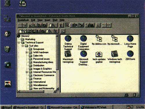 Доступность пиктограмм-ссылок и папок под Windows 95 означает, что пользователи могут собирать вместе сходные возможности, применяя конкурирующие утилиты просмотра Web и другие средства доступа к Internet. Преимущество подхода Delrina состоит в том, что предоставляемые Guidebook средства организации облегчают поиск информации.