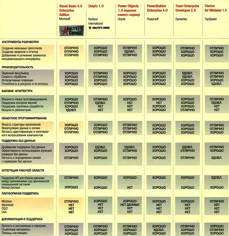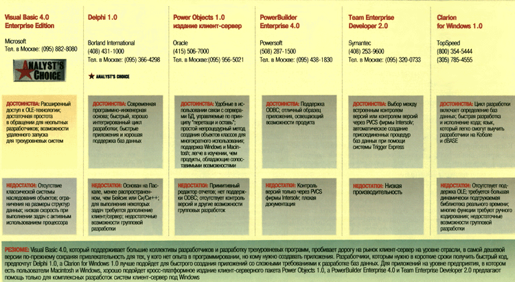 Разработчикам с расширенными требованиями к сложной поддержке данных следует сравнить VB4 с PowerObjects корпорации Oracle, PowerBuilder Enterprise корпорации Powersoft и Team Enterprise Developer корпорации Symantec.