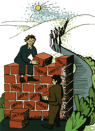 "Иногда мы, - пишут Хаммер и Чампи, - так объясняем различия, существующие между тремя типами компаний: те, кто входит в первую категорию, безнадежны, они врезались в стену и лежат на земле израненные. Те, кто входит во вторую категорию, идут вперед на крейсерской скорости, однако в свете своих бортовых огней видят: что-то приближается. Может быть, это стена? Те, кто входит в третью категорию, совершают автомобильную прогулку. День ясный, и не видно никаких препятствий. По их мнению, это самый подходящий момент, чтобы остановиться и построить стену для кого-нибудь другого".