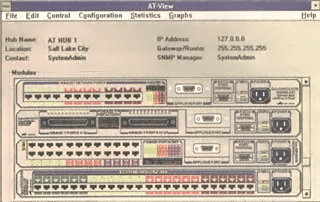 Демонстрировалась также работа модулей сетевого управления AT-View, ориентированных на платформу ManageWise фирмы Novell. Эти модули обеспечивают графическую поддержку управления концентраторами семейств 3600 и 3100.