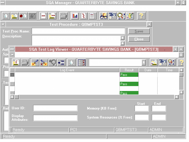 Хотя комплект TeamTest и отличается сравнительно высокой ценой - $2995, он является значительно более богатым инструментальным средством по сравнению с конкурирующими пакетами типа MS Test корпорации Microsoft. Недавно выпущенная версия комплекта фирмы SQA Suite, работающая под Windows 3.x, включает процедуру SQA Manager для разработки плана тестирования и отслеживания дефектов и SQA Robot для записи и выполнения сценария тестирования.