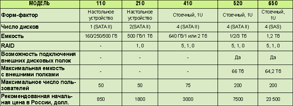 За прошедшие два года Adaptec полностью обновила линейку Snap Server (см. таблицу) и в конце января представила новую флагманскую модель серии Snap Server 650, использующую два двухъядерных процессора AMD Opteron и высокоскоростные диски SAS с частотой вращения 15 тыс. об./мин. В ее конфигурацию также включены два гигабитных сетевых контроллера и ОЗУ объемом 2 или 4 Гб. Для расширения емкости этой NAS-системы к ней можно подсоединить до семи внешних 12-дисковых полок SANbloc S50 JBOD с накопителями SAS или SATA. По мнению г-на Терлиззи, Snap Server 650 благодаря высокой производительности (система способна работать на скорости до 1045 Мб/с) и емкости подойдет и для организации хранения файлов в центральном офисе средней компании.