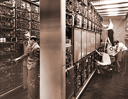 Первым человеком, обратившим их внимание на целесообразность переориентации проекта на цифровую ВТ, был коллега Форрестера по магистратуре Перри О. Кроуфорд (Perry O. Crawford), о котором я уже упоминал ранее (см. PC Week/RE, N 20/2006, c. 35). Форрестер вспоминал: " Он рассказал мне о гарвардской машине Mark I и об ENIAC’е, который находился еще в стадии проектирования. Перри был очень открытым, лишенным бюрократических замашек человеком и запросто общался с флотскими начальниками, хотя сам был штатским (в октябре 1945 г. Кроуфорд стал вольнонаемным сотрудником SDD. - Ю. П.). Он внушил им мысль, что цифровые вычислительные машины в будущем должны использоваться на командных пунктах в качестве основы информационных и управленческих систем... Ему мы во многом обязаны рождением нашей машины".